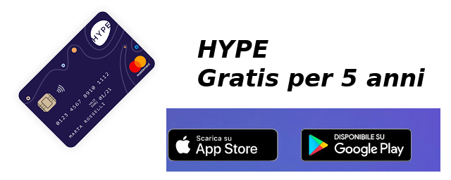 Carta prepagata gratis oppure con Plus 12 euro anno ti permette di gestire il tuo denaro con facilità e divertirti come vuoi. Gestita sia da app cellulare (Versione gratis) che da web Pc-Tablet-Cellulare ( Versione Plus) .Notifiche istantanee e possibilità di ricarica cellulare di diversi gestori, trasferimento denaro tra amici HYPE con sconti particolari su acquisti di vario genere. Si ricarica tramite bonifico o carta ( Versione gratis con commissione, la Plus gratis) associando una carta se volete di qualsiasi genere (Ricaricabile ecc…) Potete guadagnare 250 di buoni Amazon per ogni 5 amici ci sono 50 euro che vi tornano sempre in buono Amazon da spendere su sito.